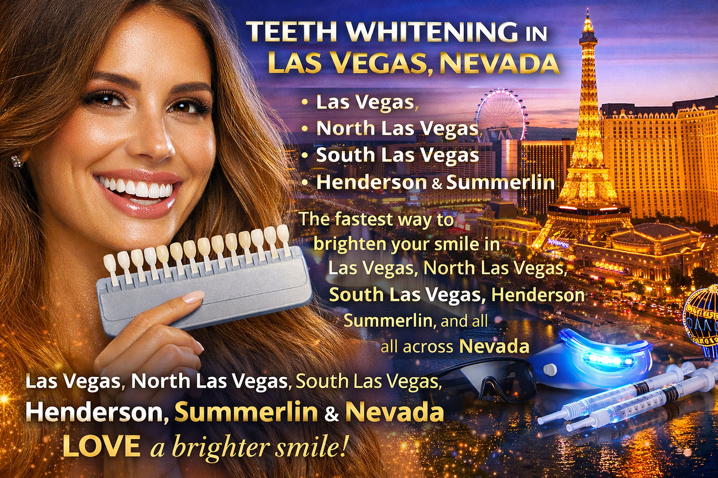 Looking for professional teeth whitening in Las Vegas? Whether you’re in North Las Vegas, South Las Vegas, Henderson, or Summerlin, people all over Las Vegas and Nevada are brightening their smiles. From Las Vegas to North Las Vegas, from South Las Vegas to Henderson and Summerlin, professional whitening is the easiest way to get a confident smile.
